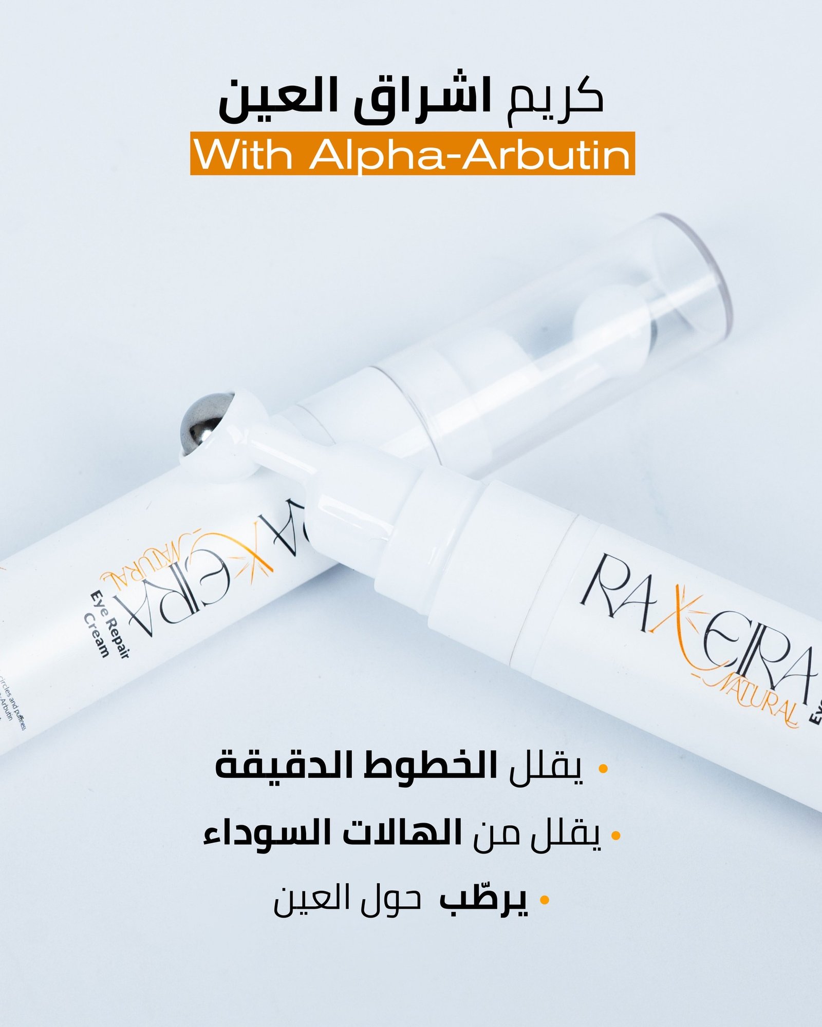كريم إصلاح العين من راكسييرا بقوة ألفا أربوتين وحمض الهيالورونيك مع ملمس سريع الامتصاص، يقلل من ظهور الهالات السوداء ويفتح البشرة.