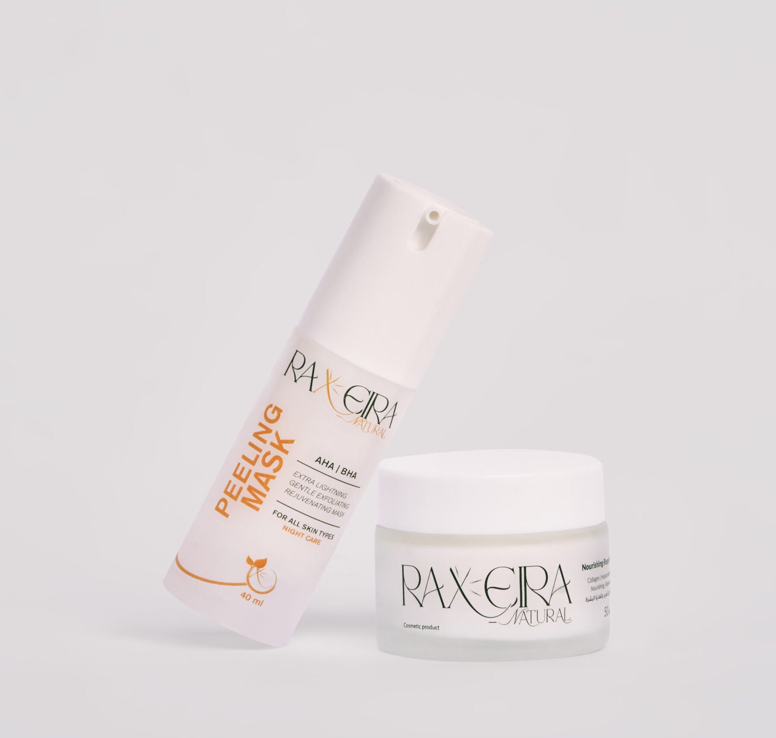 A complete routine to purify and renew the skin, starting with deep cleansing and removing impurities using the peeling mask, followed by intense hydration and nourishment with the night cream for soft, radiant skin.